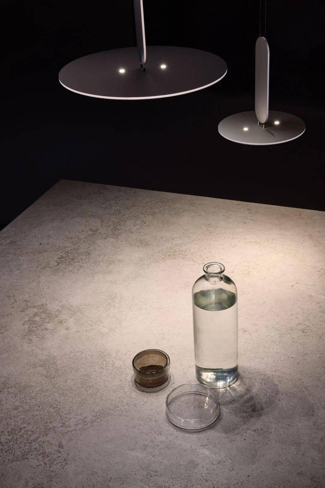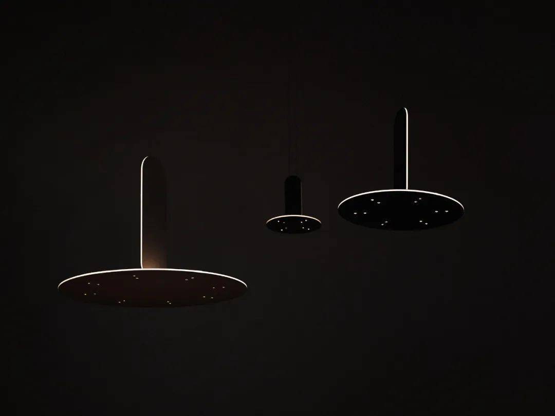 PARIS 是在極簡主義形式語言和技術(shù)精確性之間的緊張關(guān)系中創(chuàng)建的。兩個平坦的表面聚集在一點(diǎn)上,通過白色光線接收其輪廓。特意采用了傳統(tǒng)吊燈的原型,但通過金絲飾面將其轉(zhuǎn)移到現(xiàn)代。
