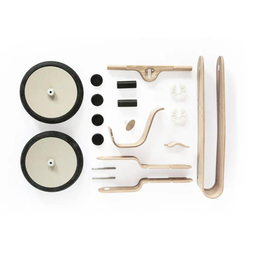 受拉脫維亞彎曲樺木膠合板傳統(tǒng)技術(shù)的啟發(fā),開發(fā)了輕型兒童平衡自行車。通過遵循木材的自然結(jié)構(gòu),達(dá)到了設(shè)計(jì)和材料成分之間的平衡,賦予產(chǎn)品溫暖的個性。可持續(xù)和自然友好的材料與簡單的設(shè)計(jì)相融合,使自行車保持功能性、操控觸感、組裝簡單和騎行樂趣。