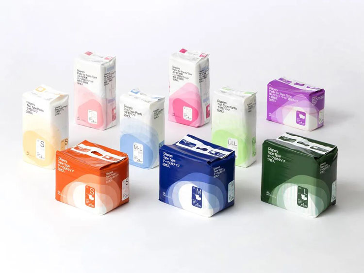旨在提高護(hù)理人員作業(yè)效率、同時(shí)消除穿戴者心理抵觸感的成人紙尿褲。通過清晰易懂的信息設(shè)計(jì),便于在護(hù)理人手短缺的環(huán)境中迅速辨識(shí)紙尿褲類型。無論以何種方式擺放都能實(shí)現(xiàn)信息可視化,減少確認(rèn)所需時(shí)間。同時(shí)采用無年齡與無性別感的設(shè)計(jì),避免拿取時(shí)的尷尬,減輕穿戴者的心理負(fù)擔(dān)。