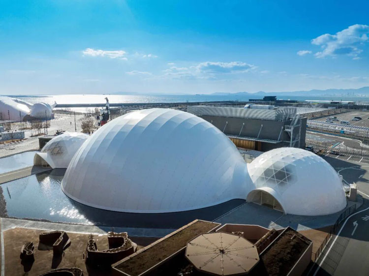 體現(xiàn)“多樣而統(tǒng)一”的大阪·關(guān)西世博會(huì)會(huì)場(chǎng)設(shè)計(jì)理念的象征性建筑。其結(jié)構(gòu)結(jié)合日本神社佛閣所用的傳統(tǒng)貫接工法與現(xiàn)代技術(shù)建造而成,不僅作為會(huì)場(chǎng)主動(dòng)線保障交通順暢,也提供遮擋風(fēng)雨與日曬的舒適停留空間。